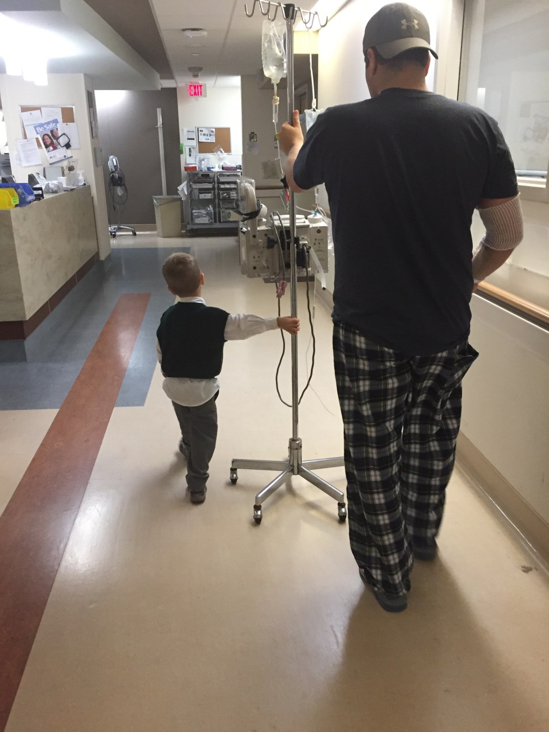 Scott and Harrison took Betsy for a walk around the common area, ate dinner and met a few of Scott’s nurses. Harrison decided Scott’s room is his “office”, and when it was time to go, felt his visit was much too short. Home is “soo boring. The most boringest thing ever”.