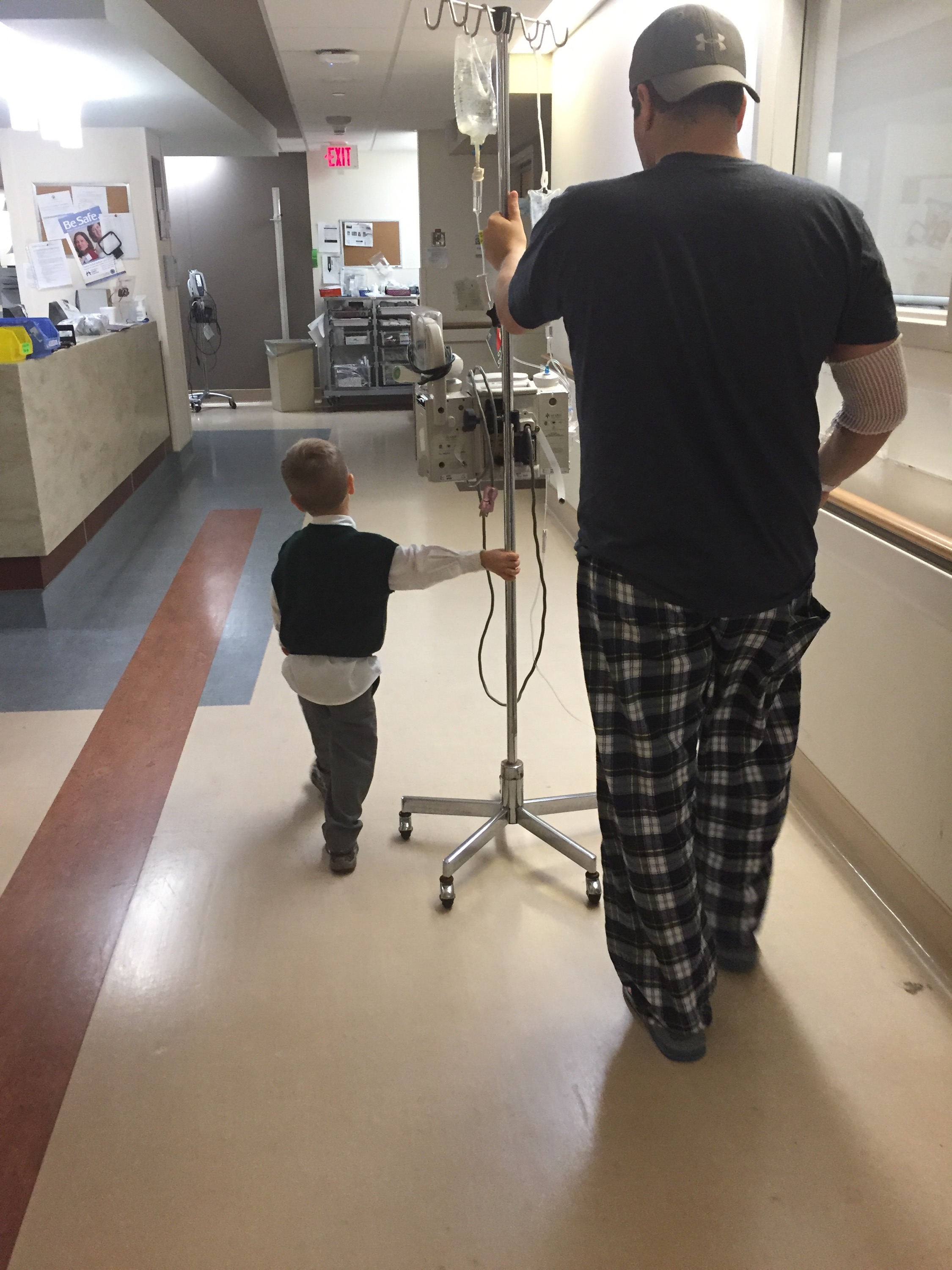 After the initial discomfort of having a room full of people watch him respond to seeing his daddy, and being a bit overwhelmed, Harrison was just fine. In room tv? Cookies? Grape Popsicles? He settled in prettttty easily for a visit. And you could see Scott just soak him in, and get recharged.